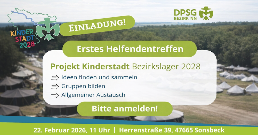 Volles Haus, neue Gesichter und große Pläne: Bei der Bezirksversammlung der DPSG Niederrhein-Nord in Schermbeck herrschte am Wochenende beste Stimmung. Mit neuen Vorstandsmitgliedern, einem beschlossenen Jubiläums-Bezirkslager in Form einer Kinderstadt und vielen frischen Ideen stellte Deutschlands größter DPSG-Bezirk die Weichen für die kommenden Jahre.